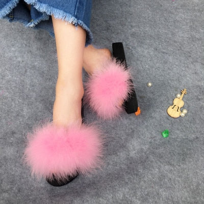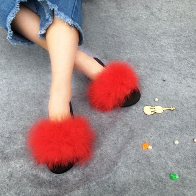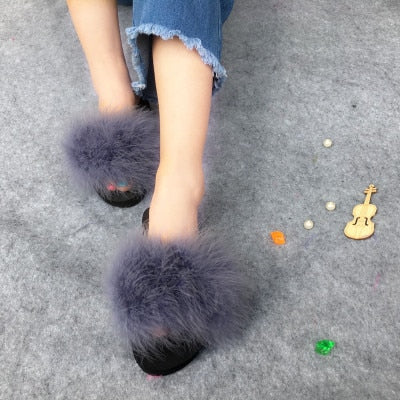 Women Feather slippers: Fluffy ostrich feathers